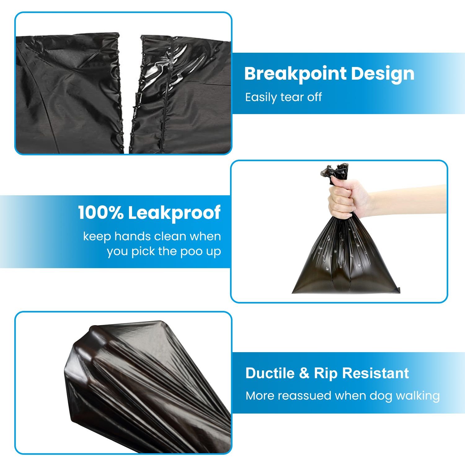 *Durable & Leakproof*:Features a proper size of 11.7x8.7in,suitable for pet owners. 100% leakproof,keep hands clean when you pick the poo up.