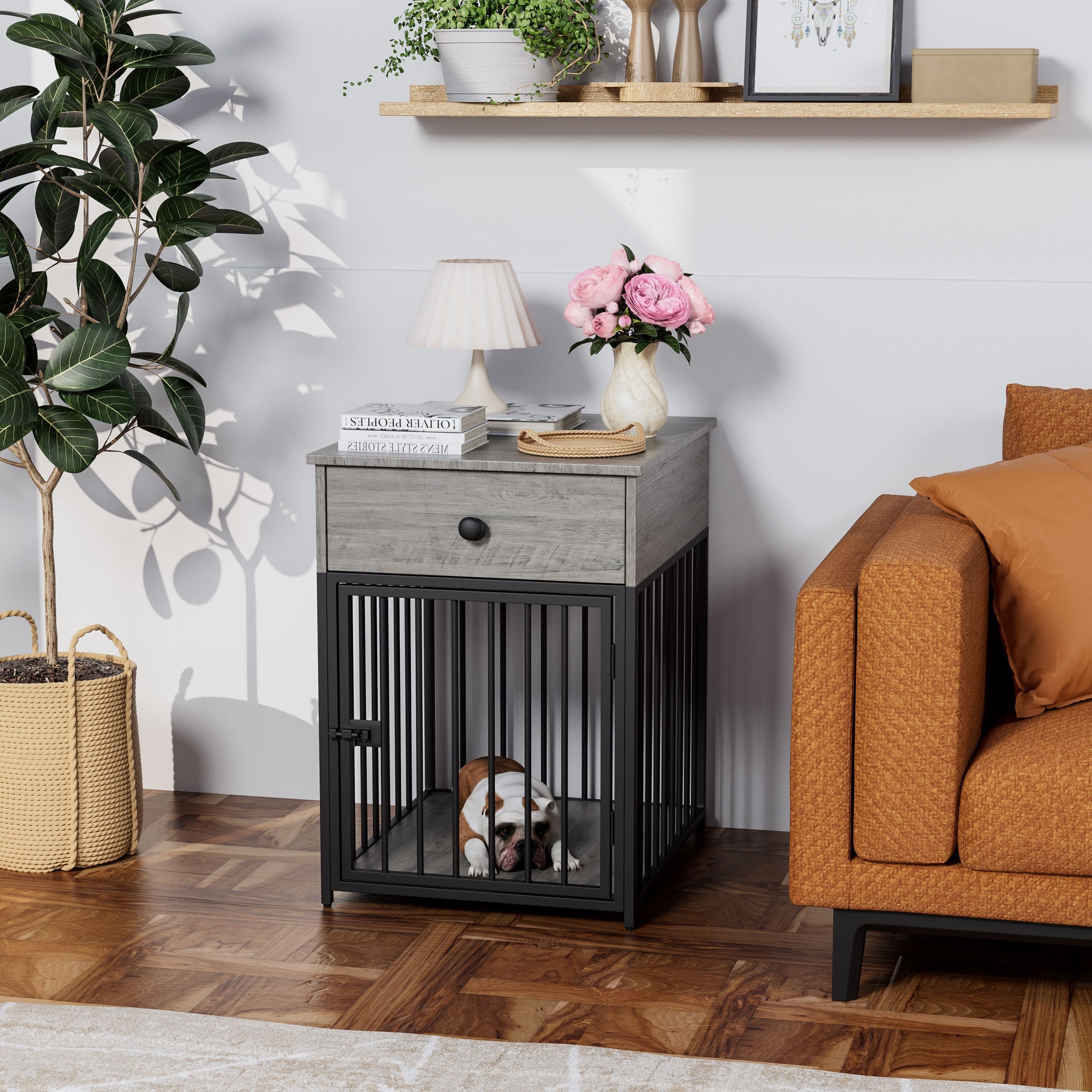Home > Dog Crate Furniture, Dog House, Decorative Dog Kennel with Drawer, Indoor Pet Crate End Table for Small Dog, Iron-Tube Dog Cage, Chew-Proof