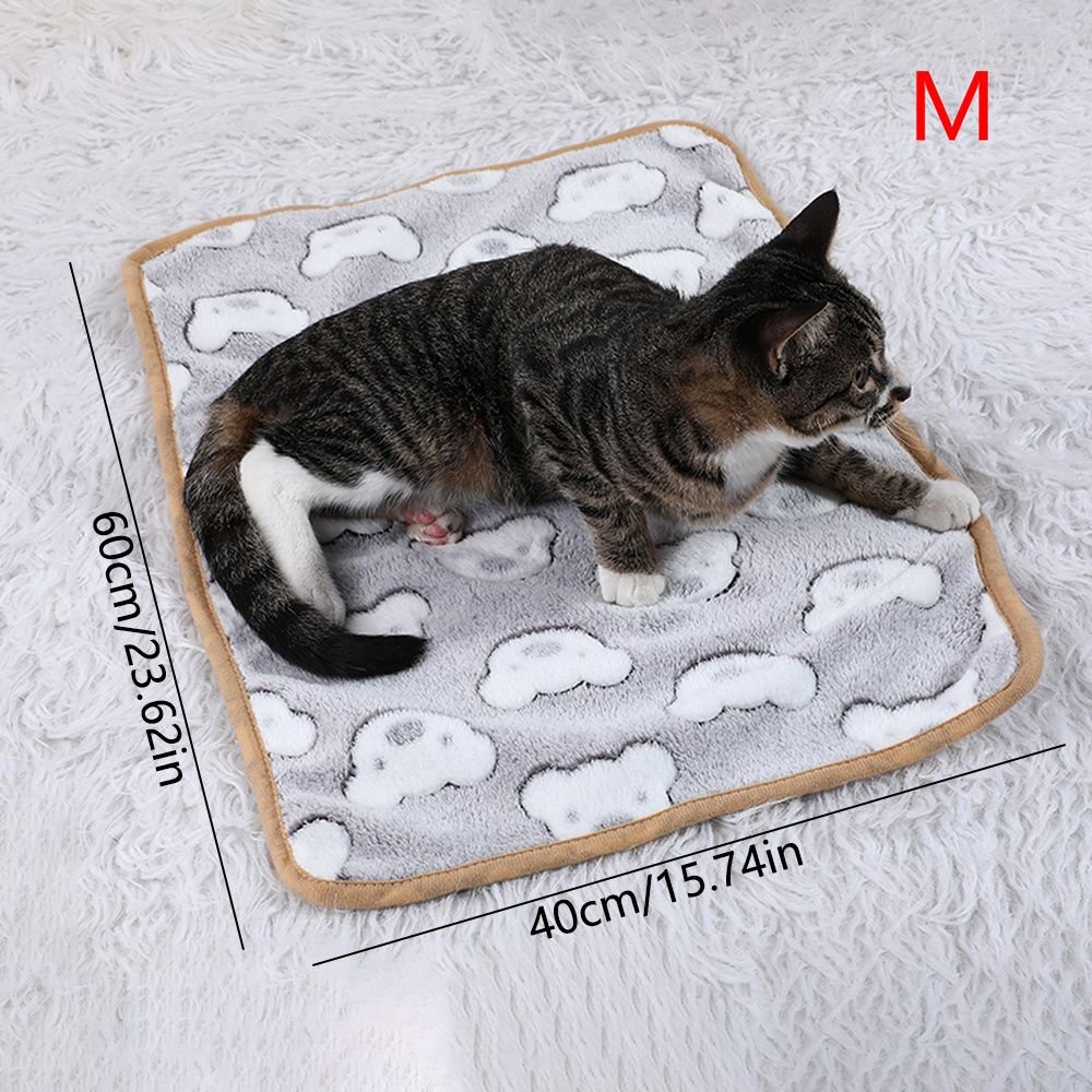Warming Pet Pad Cartoon Paw Print Cat Warm Bed Plush Sleeping Pad For Small Puppy Dogs Kitten